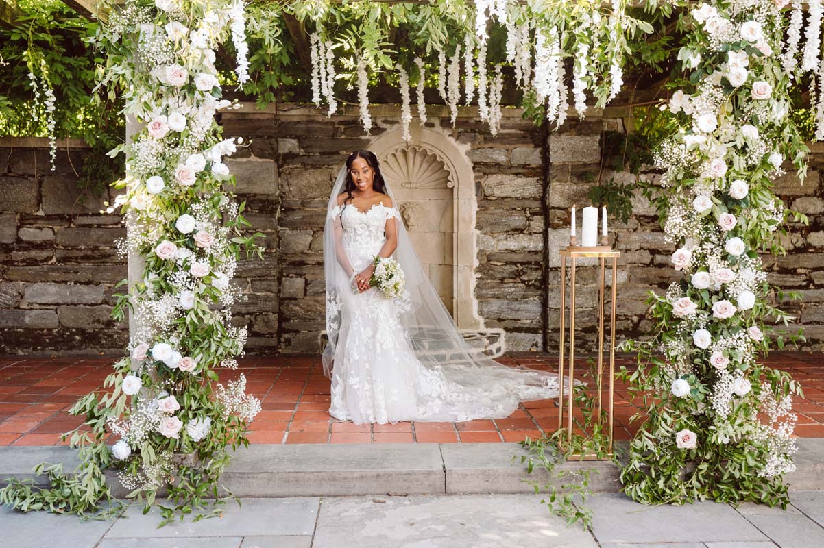 Venue: Curtis Arboretum | Florals: A Garden Party | Band/Music: Carnivale Band | Catering: Jam Catering | Cake: Jeffery Miller | Bridal Hair & Makeup: G Casamera Hair Salon | Bridal Dresses: Ceremony – Monique Lhuillier Bridal & Reception – Cult Gaia at The Wedding Shoppe | Brides Shoes: Jimmy Choo | Brides Veil: Monique Lhuillier | Grooms Tux: BALANI Custom Clothiers | Rings: Michael’s Jewelers, Manly Bands | Flower Wall: Nicol Floral Design | Invitations: The Papery of Philadelphia | Getaway Car: 1964 Rolls Royce from First Class Limos | Assistant Photographers: Kayla Cayemitte and Logan Pondexter