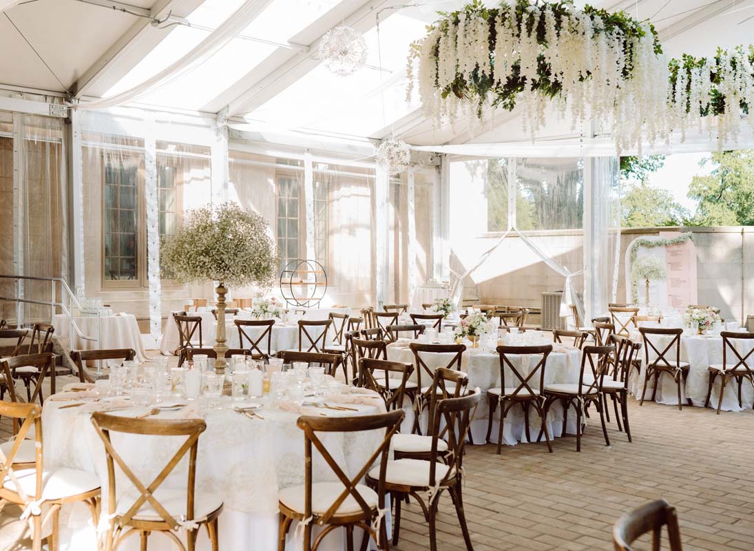 My team and I arrived at the venue in the afternoon and photographed everything. We started with Kyra, who was getting ready in the bridal suite downstairs. Then we grabbed shots of the venue as it slowly came to life, thanks to all the amazing vendors who were also present to prepare the day. The flowers… the flowers! There were so many flowers for this celebration, and I loved it. If there is one thing you can’t have too much of, it’s flowers: beautiful, gorgeous bouquets that covered the tables, the ceremony location, and even hung from the ceilings. I was in love.