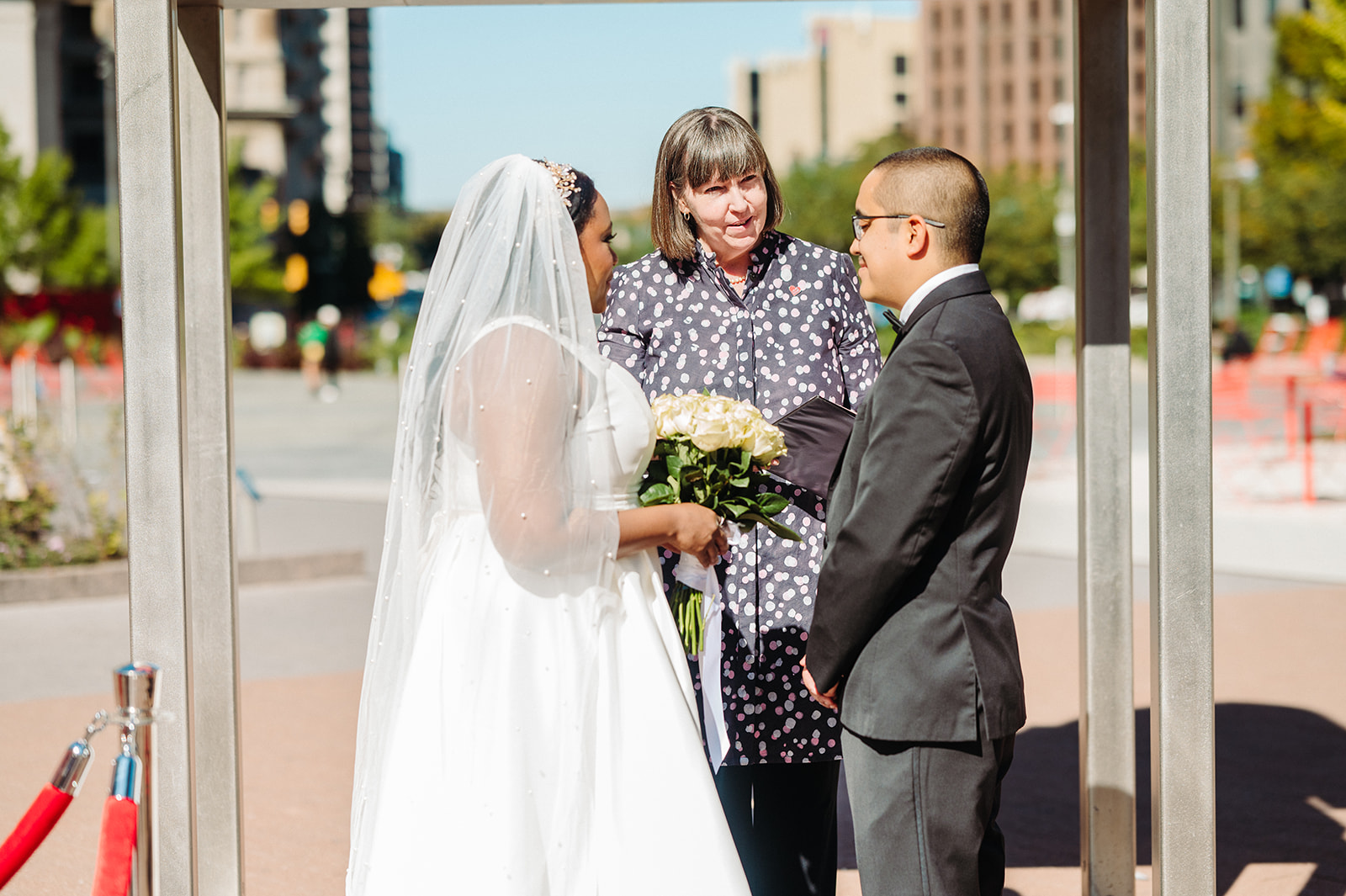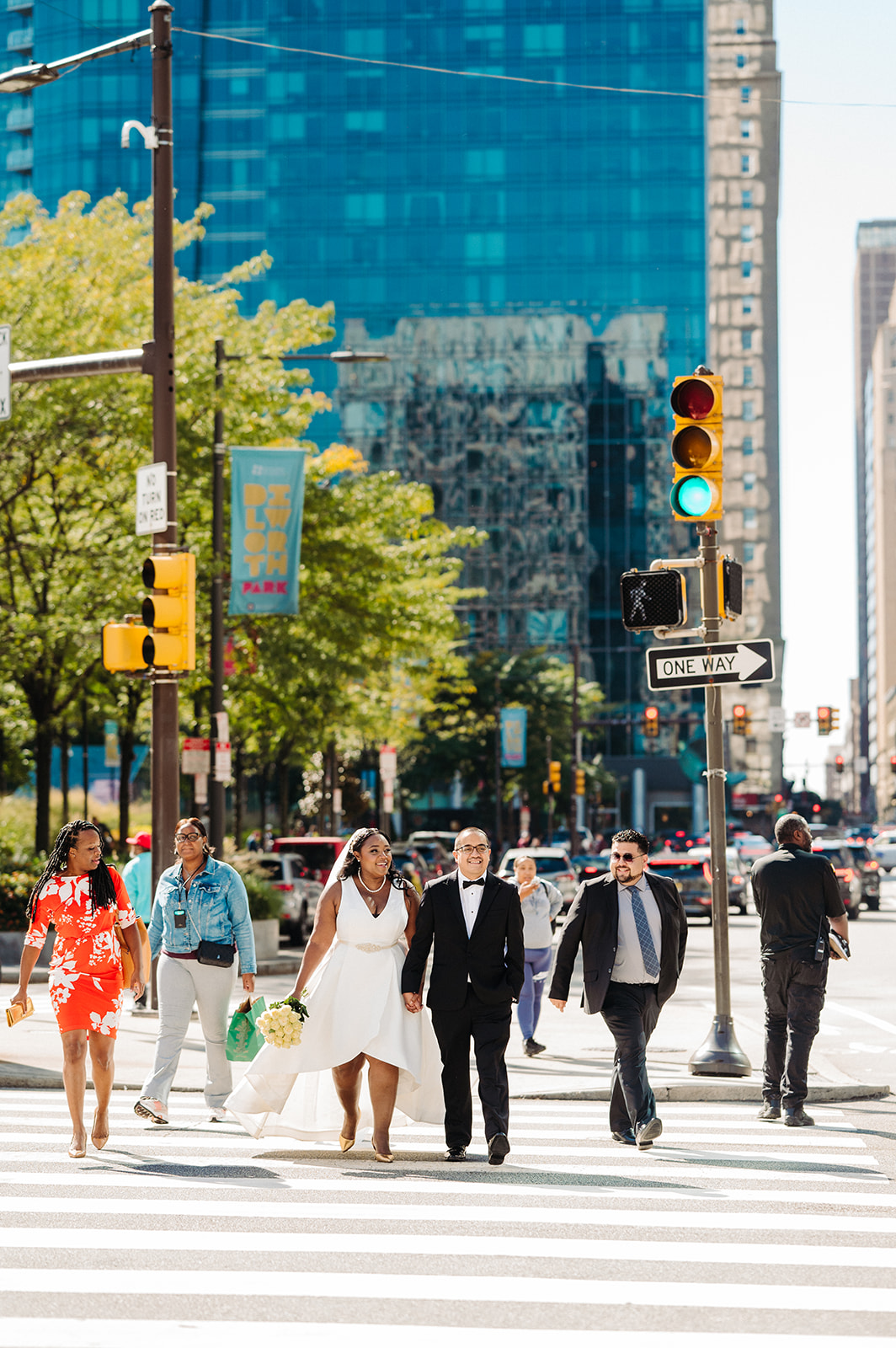From there, we took a short stroll to City Hall for some romantic portraits framed by Philadelphia’s grand architecture. Then came the ceremony itself: a peaceful walk down to Love Park, where they stood in front of the iconic LOVE sculpture and exchanged vows surrounded by the people who mattered most.
