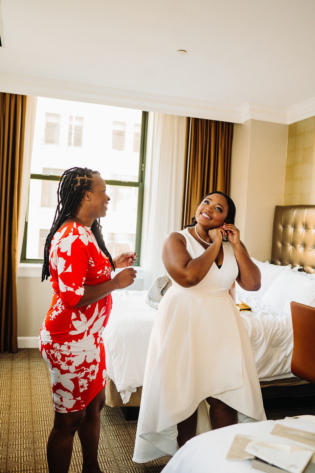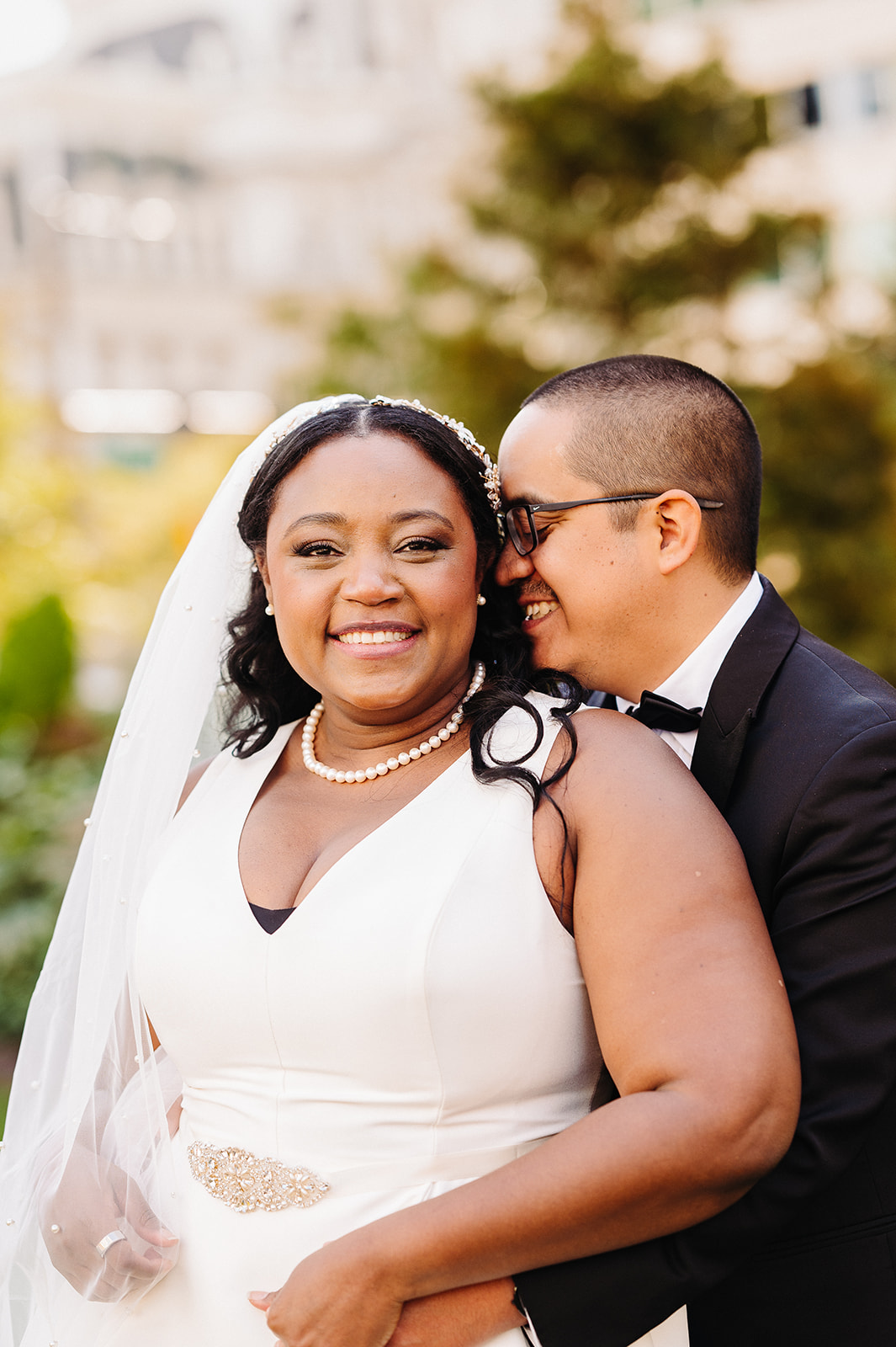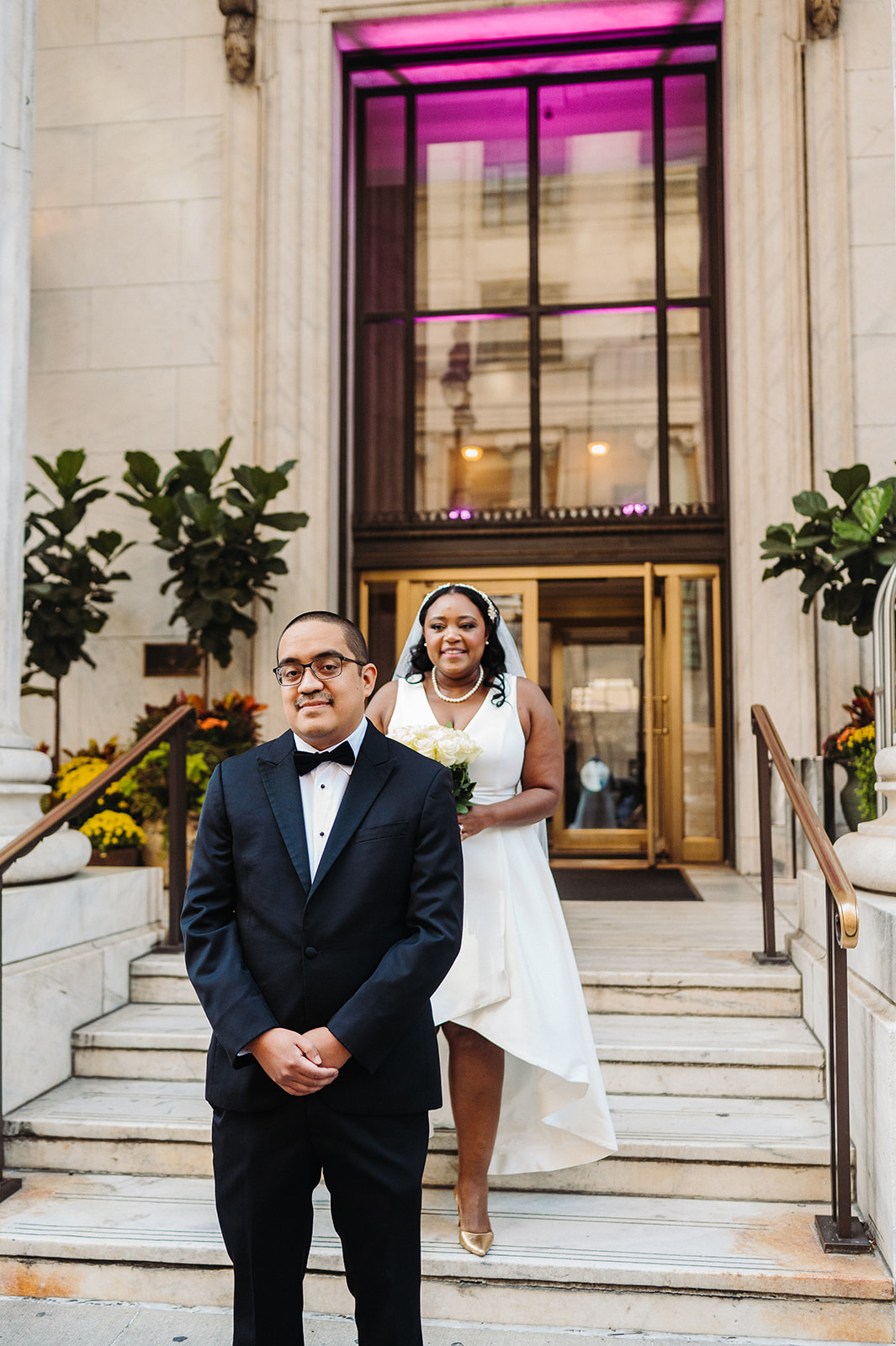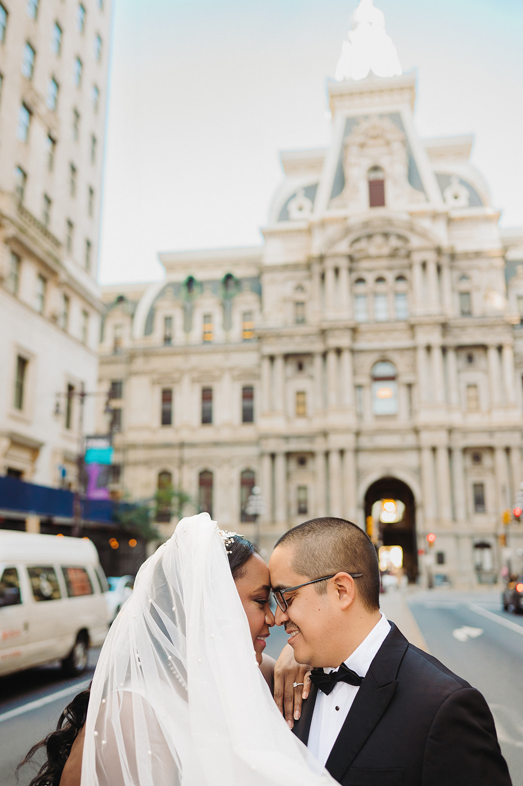 Their day started at the Ritz-Carlton Philadelphia, where they got ready just a few floors apart. There’s always something special about that anticipation—quiet moments filled with nerves, laughter, and love. After slipping into their wedding attire, we stepped outside for a sweet first look right in front of the hotel. It was simple, quick, and filled with the kind of joy that sets the tone for the rest of the day.