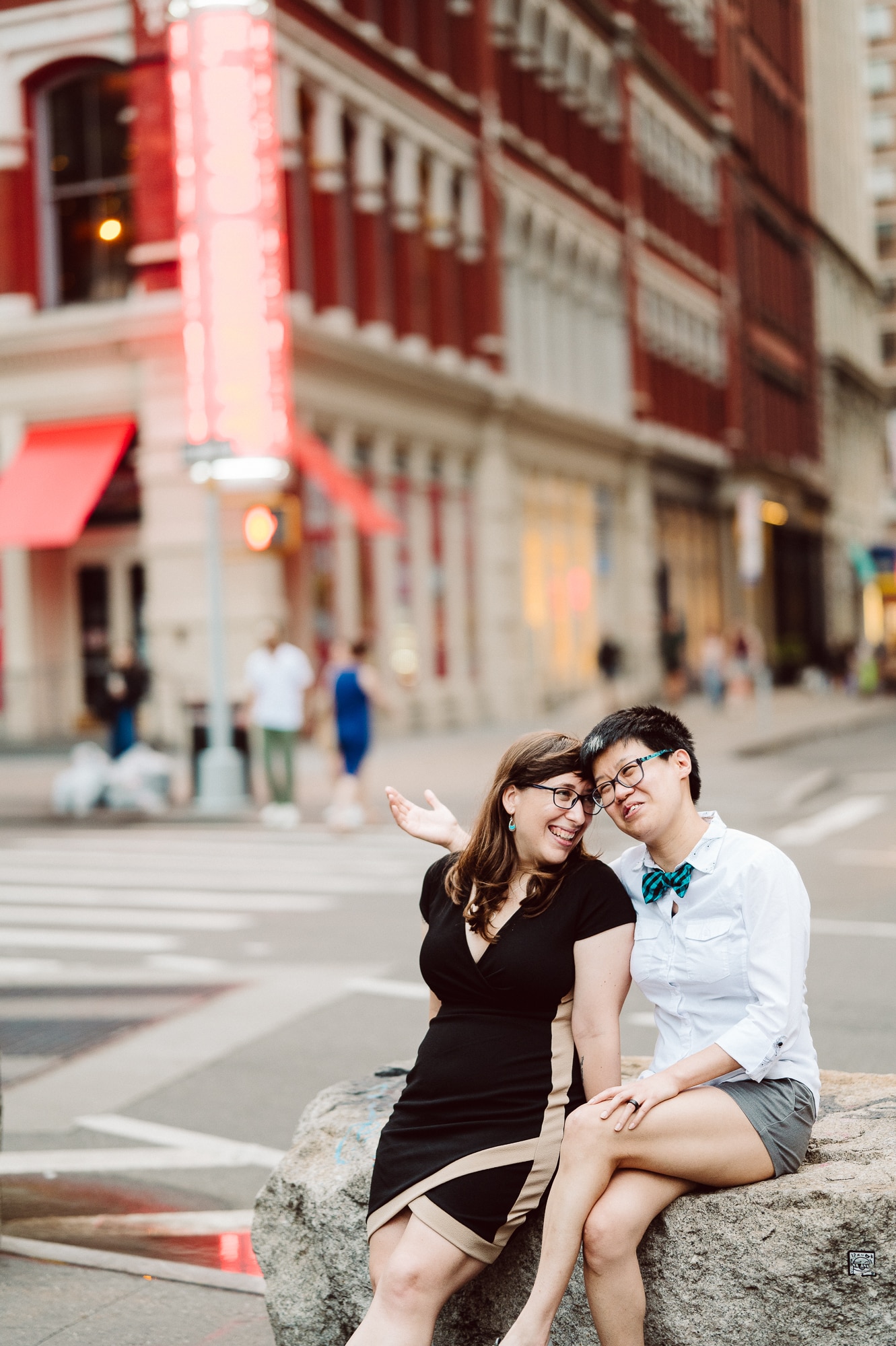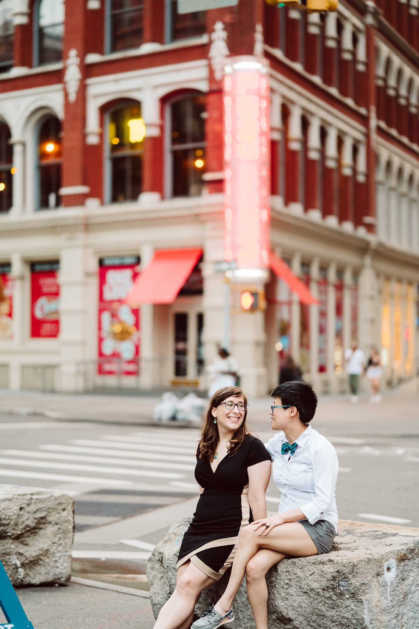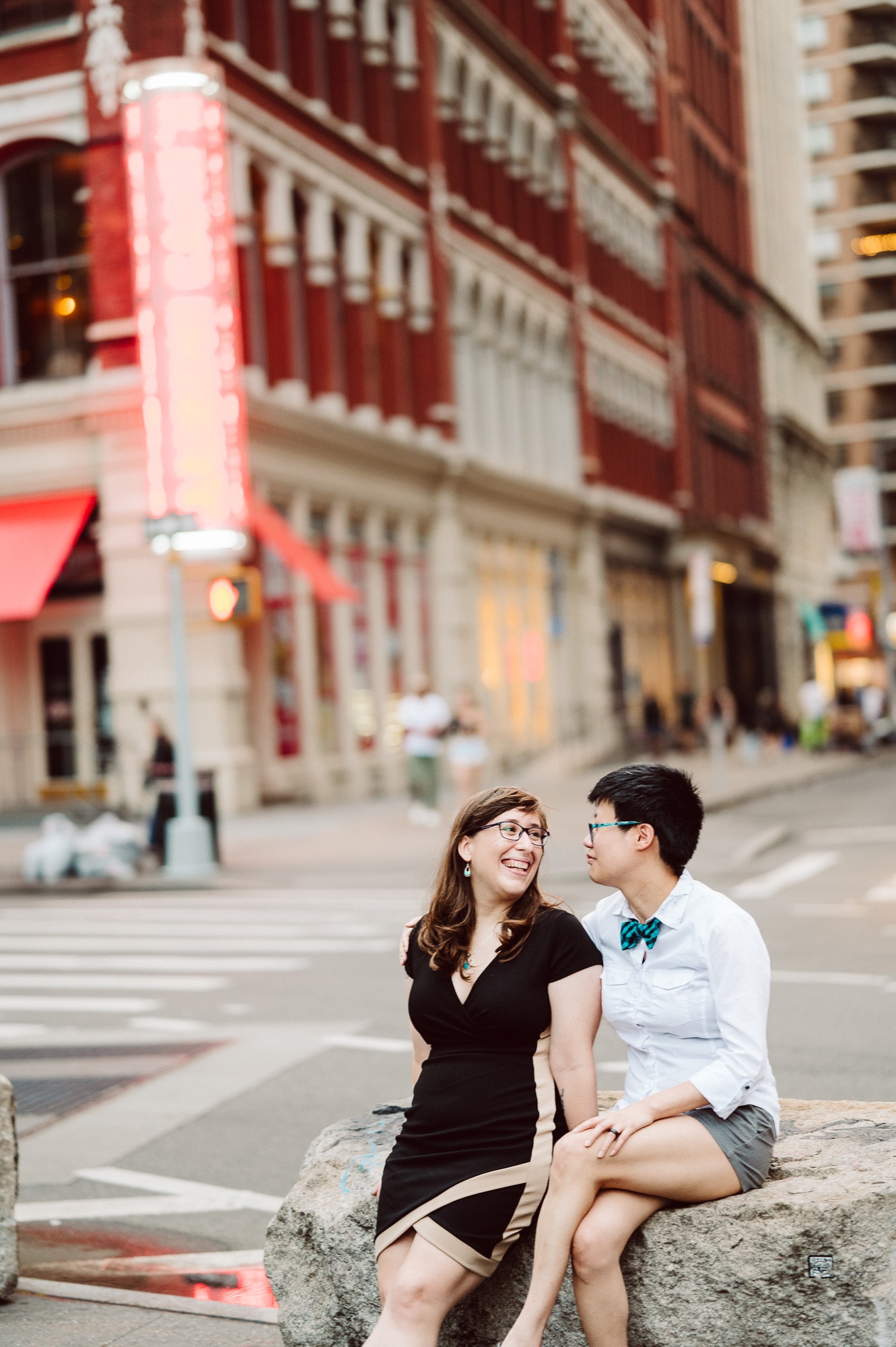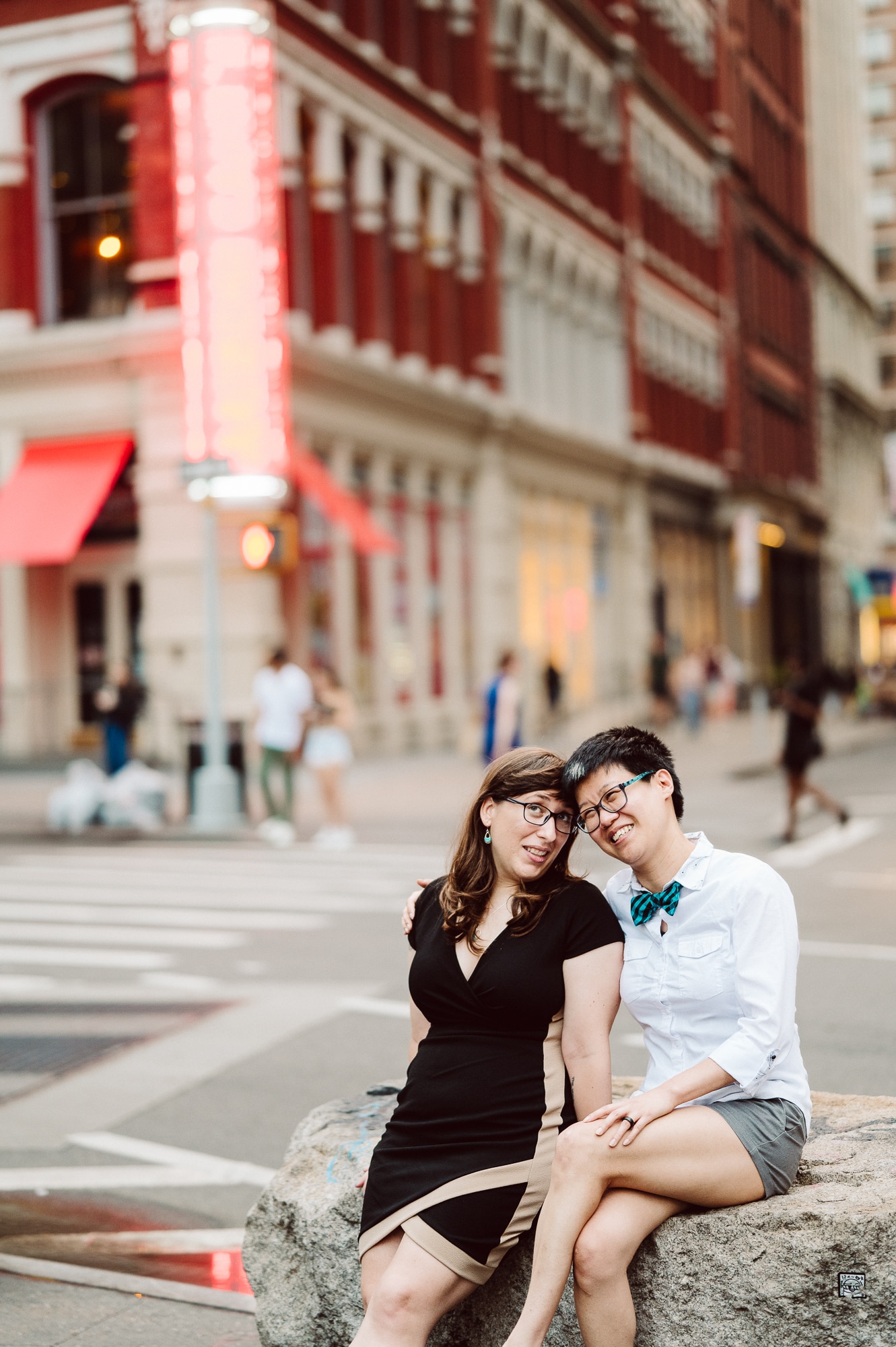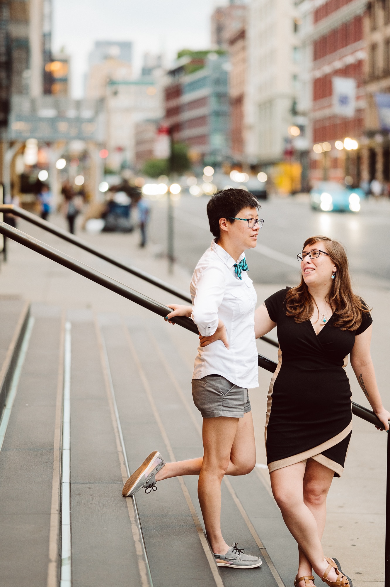 Continuing our adventure through the enchanting streets of Manhattan, we handpicked various locations that held a special place in Leah and Helen’s courtship. Each spot was thoughtfully chosen to encapsulate their personal history and embrace the dynamic energy and fast-paced rhythm that epitomize the essence of New York City. My objective was to document their carefree day together, capturing the vibrancy and liveliness of the city while they reveled in each other’s company. To my delight, the final results surpassed all expectations, leaving me with a profound sense of satisfaction and joy.