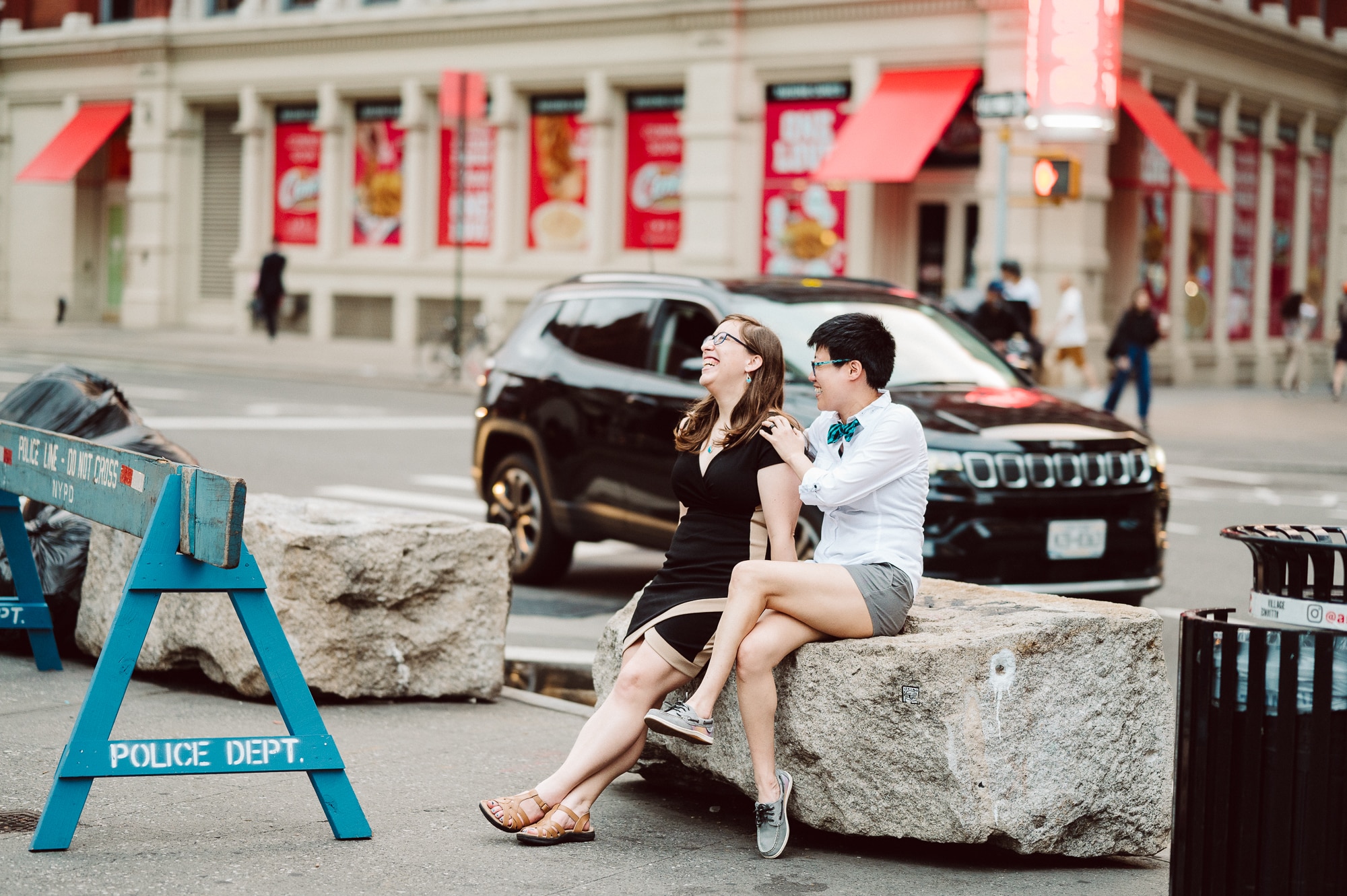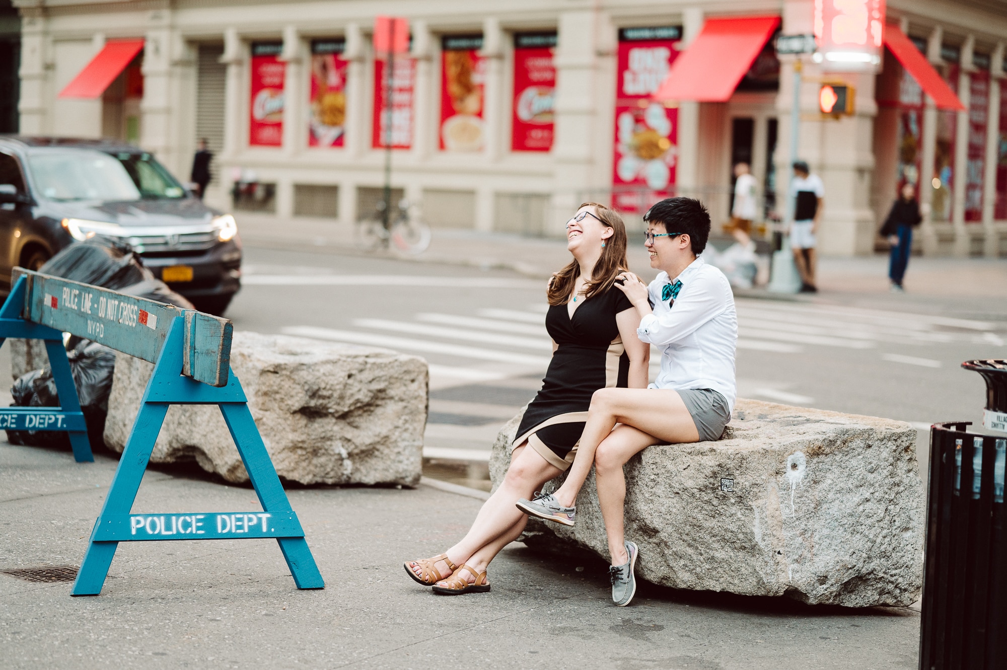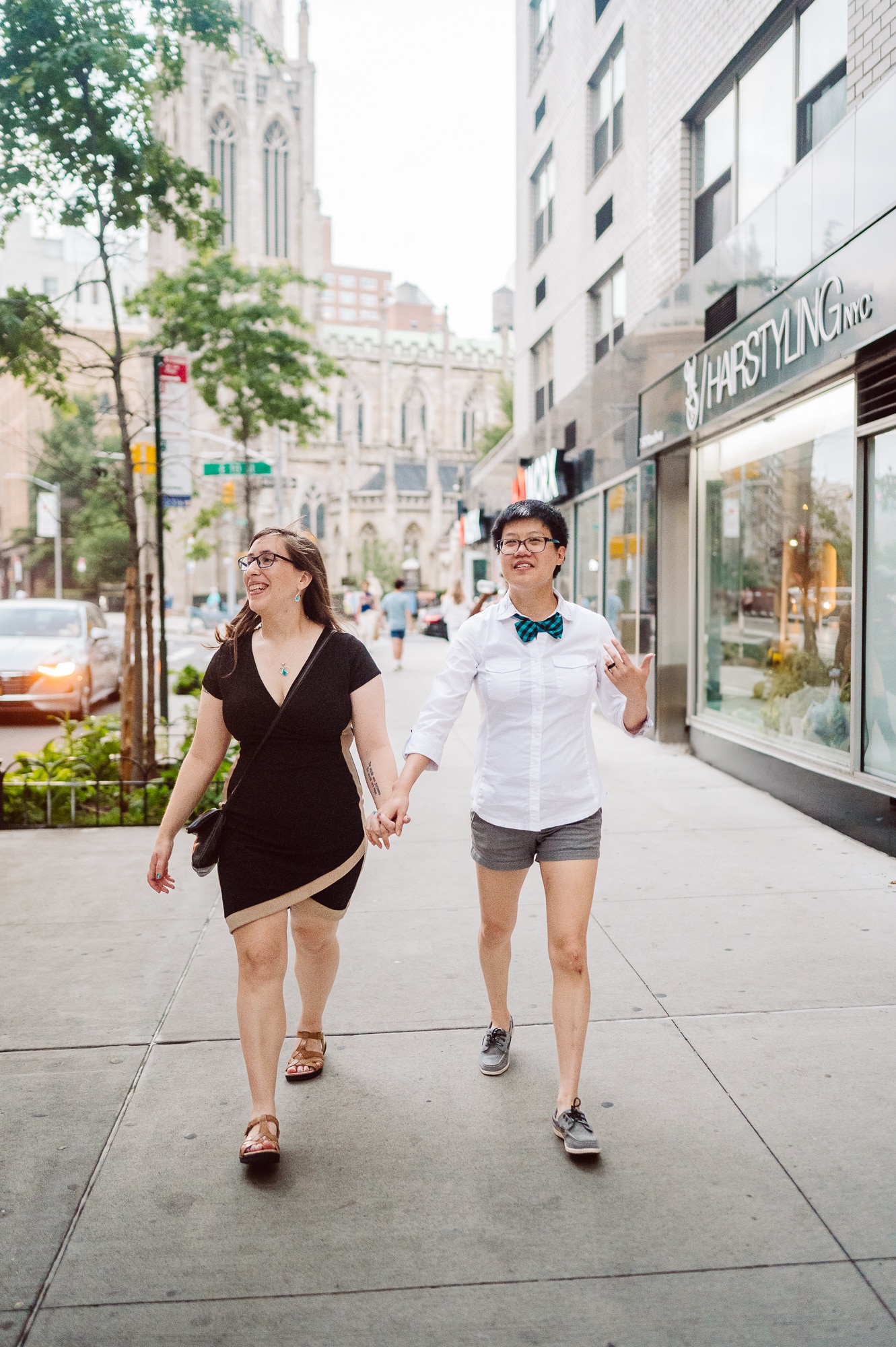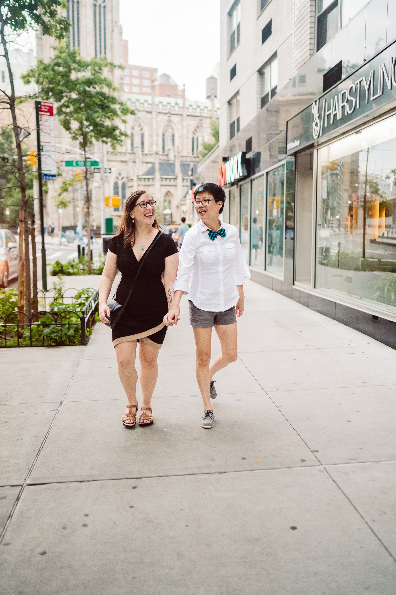 Continuing our adventure through the enchanting streets of Manhattan, we handpicked various locations that held a special place in Leah and Helen’s courtship. Each spot was thoughtfully chosen to encapsulate their personal history and embrace the dynamic energy and fast-paced rhythm that epitomize the essence of New York City. My objective was to document their carefree day together, capturing the vibrancy and liveliness of the city while they reveled in each other’s company. To my delight, the final results surpassed all expectations, leaving me with a profound sense of satisfaction and joy.