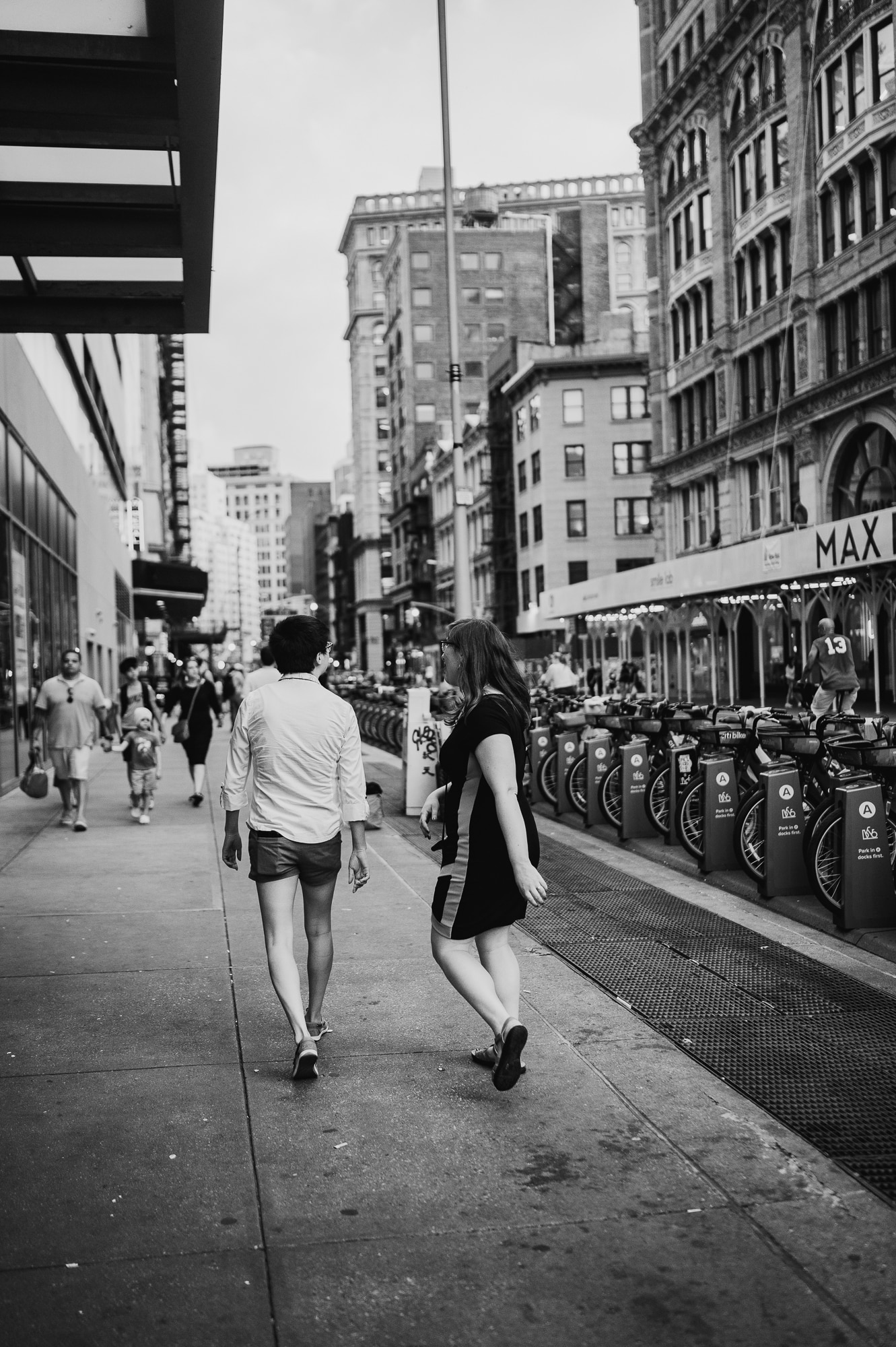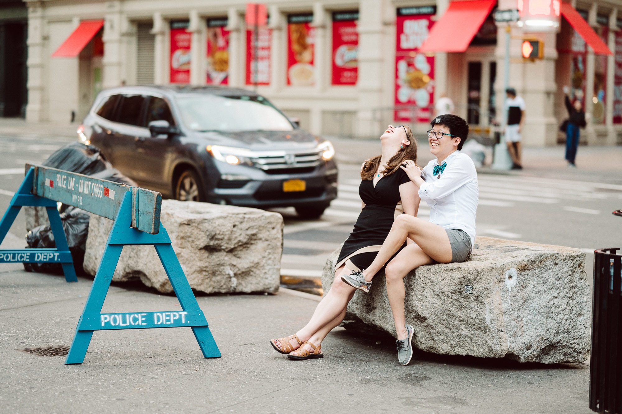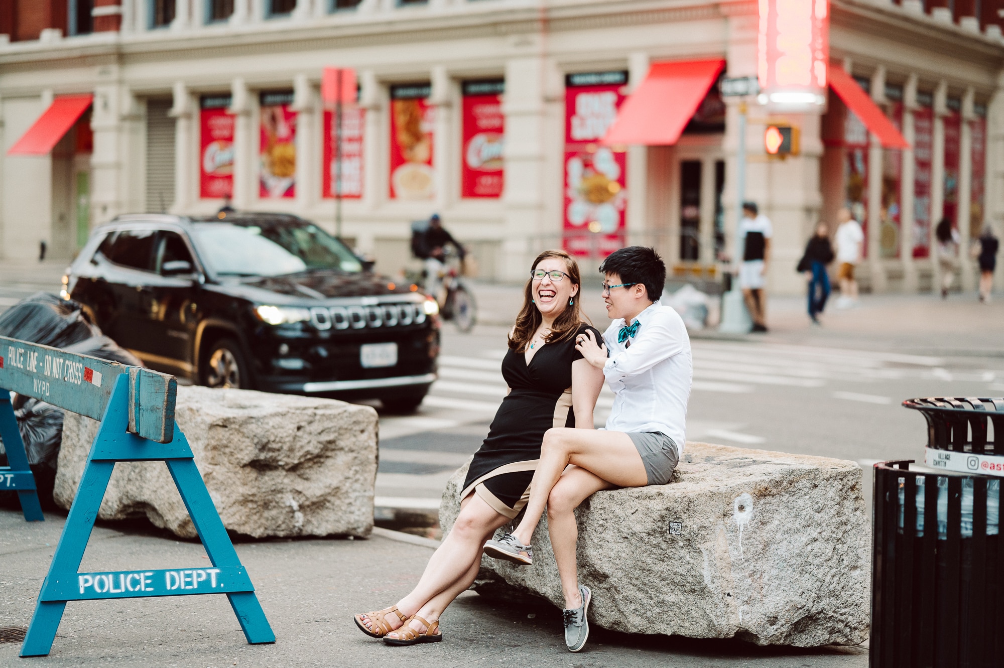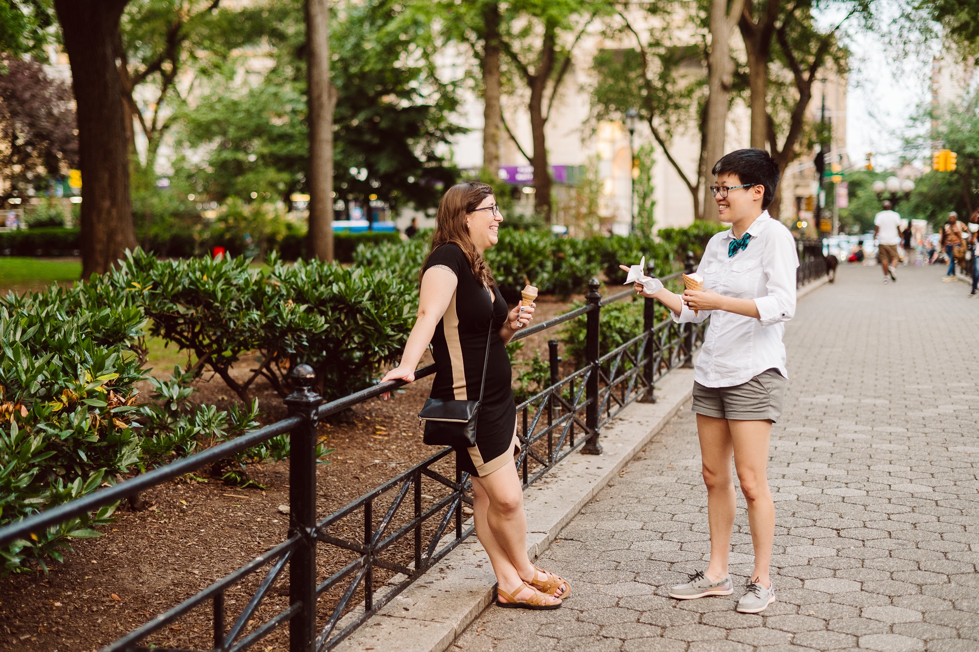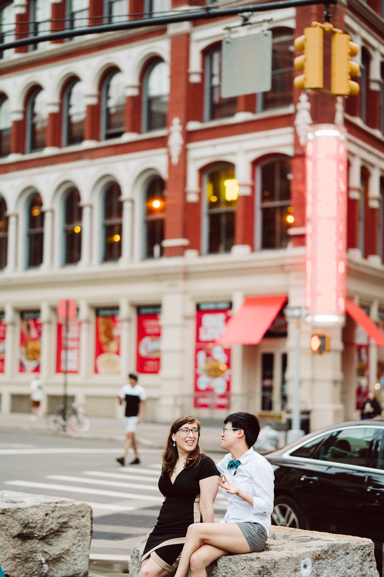 Continuing our adventure through the enchanting streets of Manhattan, we handpicked various locations that held a special place in Leah and Helen’s courtship. Each spot was thoughtfully chosen to encapsulate their personal history and embrace the dynamic energy and fast-paced rhythm that epitomize the essence of New York City. My objective was to document their carefree day together, capturing the vibrancy and liveliness of the city while they reveled in each other’s company. To my delight, the final results surpassed all expectations, leaving me with a profound sense of satisfaction and joy.