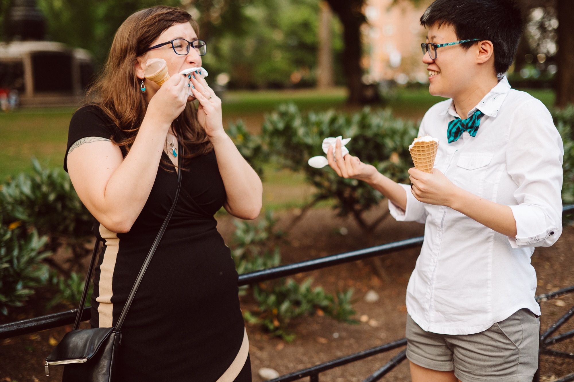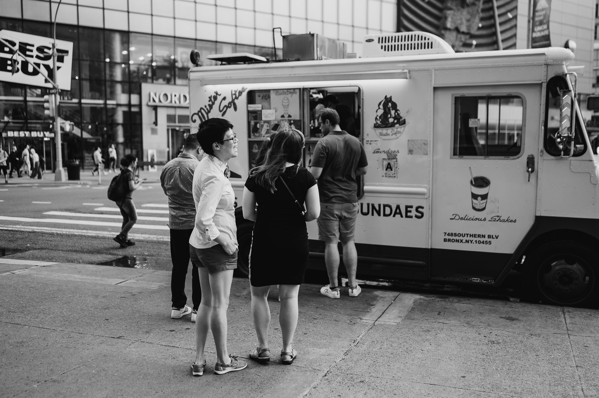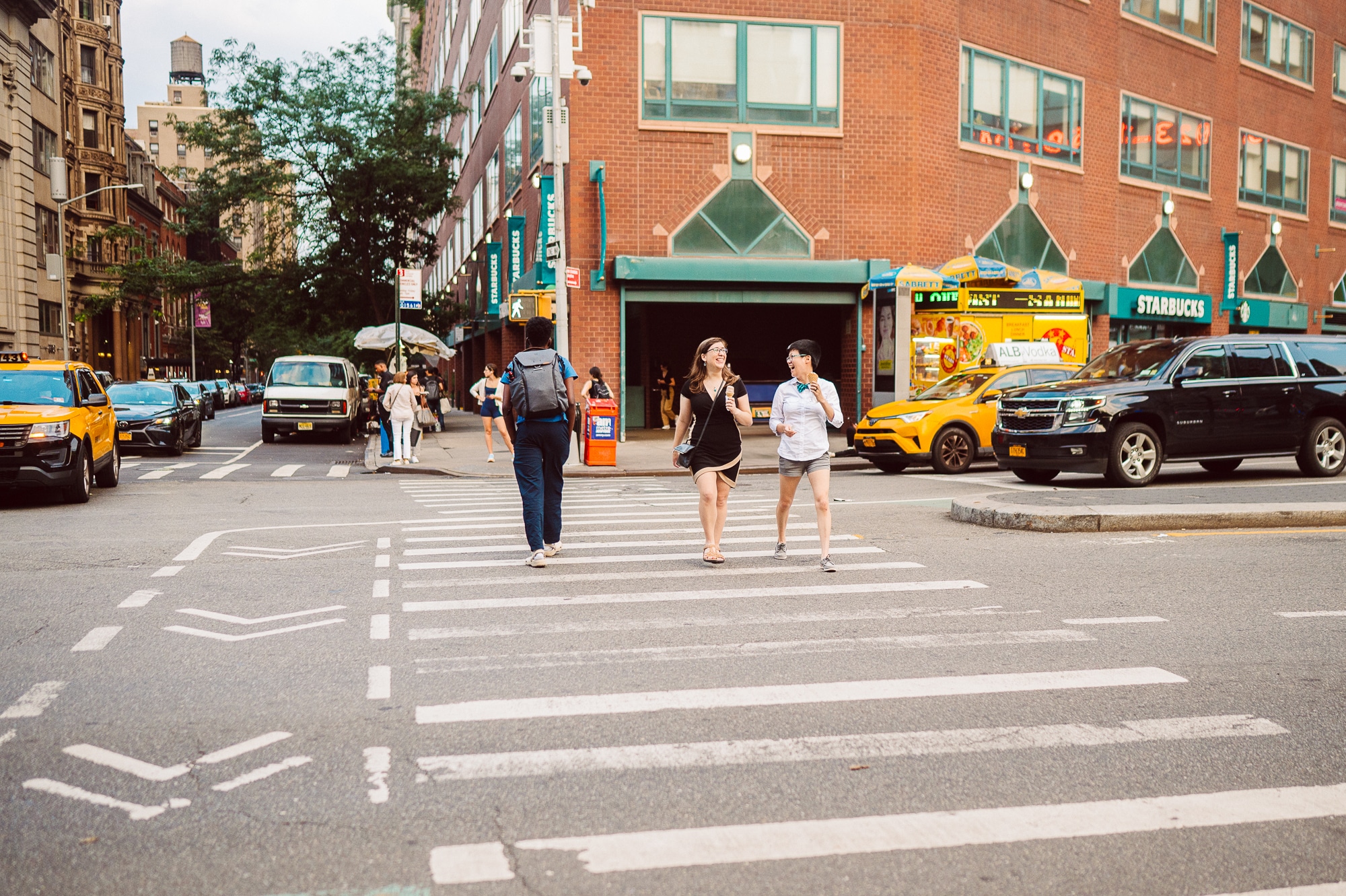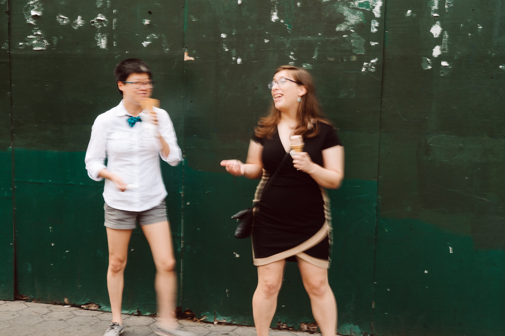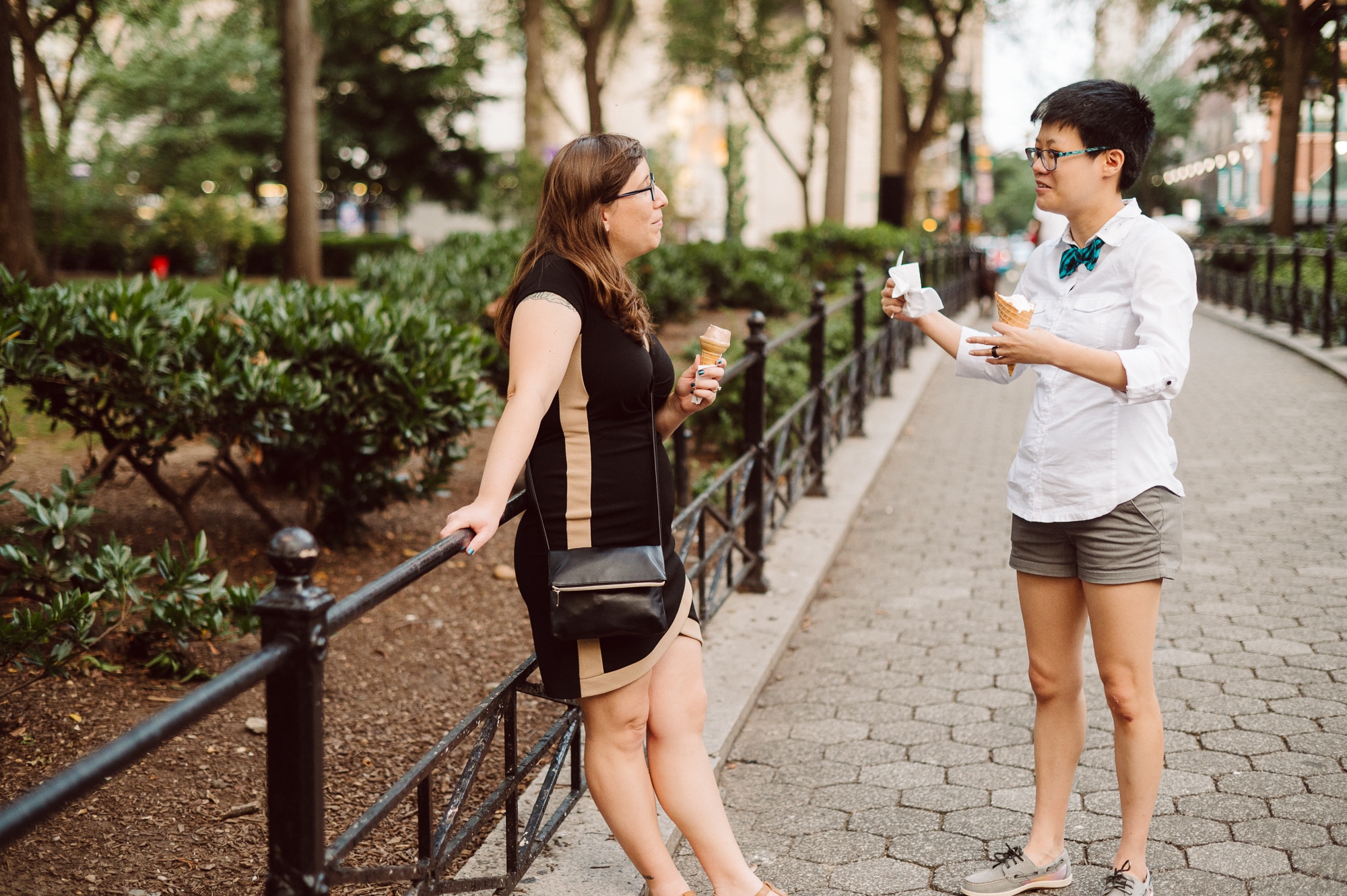 Continuing our adventure through the enchanting streets of Manhattan, we handpicked various locations that held a special place in Leah and Helen’s courtship. Each spot was thoughtfully chosen to encapsulate their personal history and embrace the dynamic energy and fast-paced rhythm that epitomize the essence of New York City. My objective was to document their carefree day together, capturing the vibrancy and liveliness of the city while they reveled in each other’s company. To my delight, the final results surpassed all expectations, leaving me with a profound sense of satisfaction and joy.