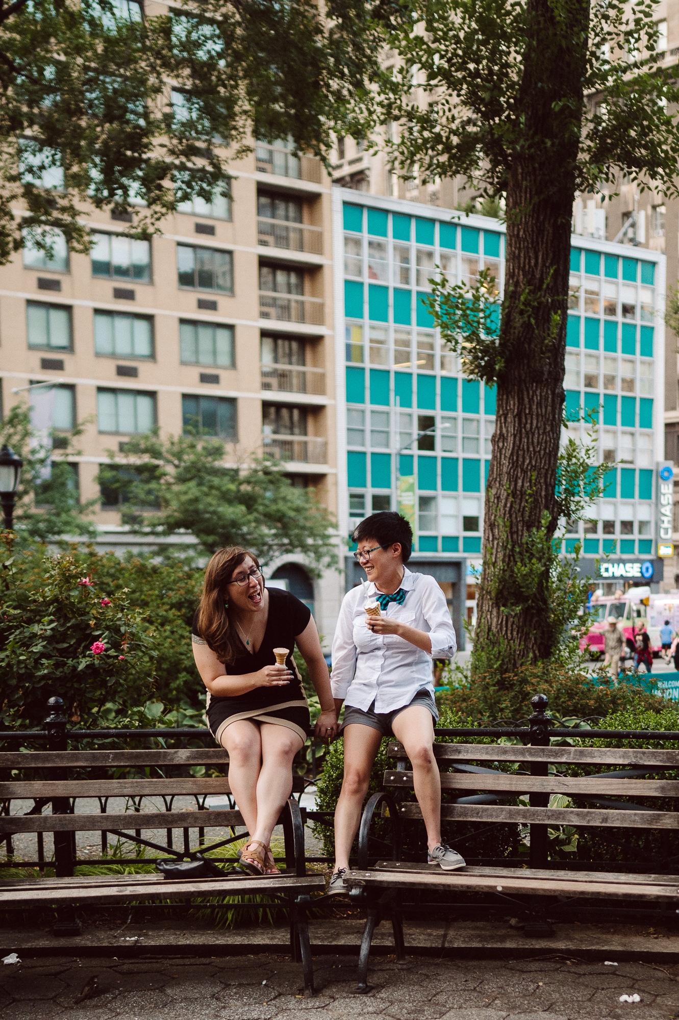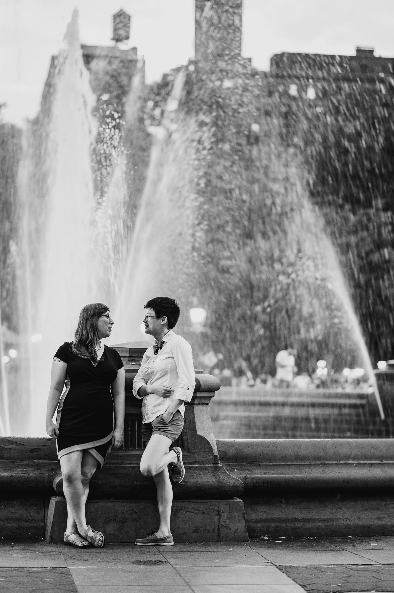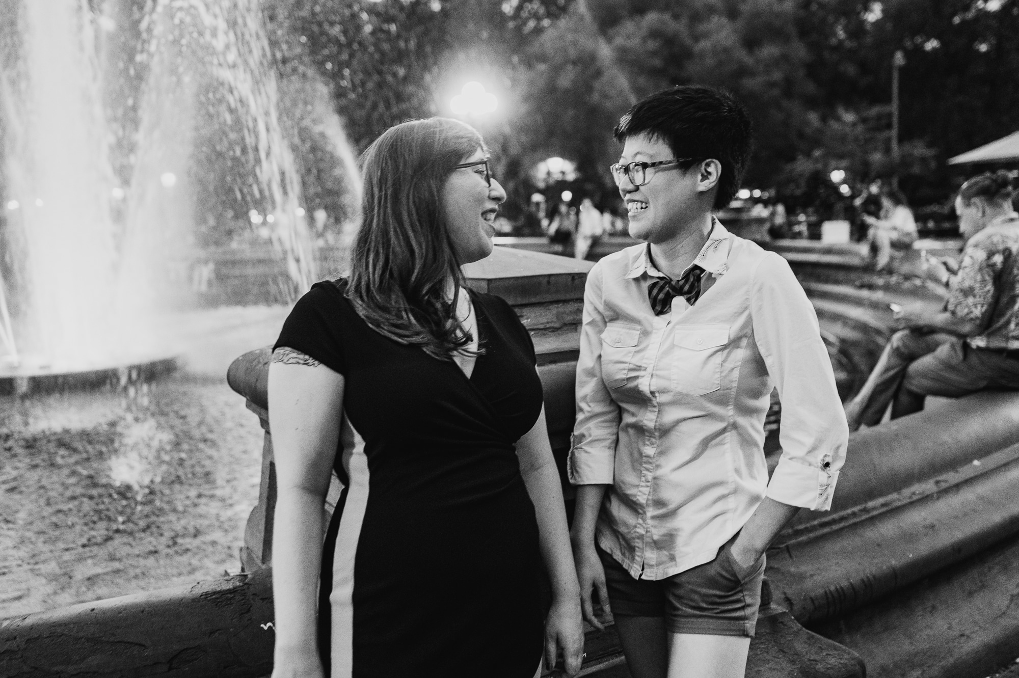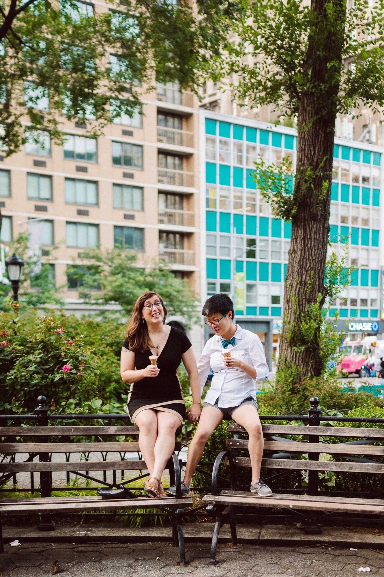 Leah and Helen, an absolutely delightful couple, discovered my work online, and it felt like destiny brought us together. From the very first moment we met, their genuine affection and undeniable chemistry were palpable, igniting my excitement to capture their unique love story through the lens of my camera. Throughout the session, their endearing moments were infused with contagious laughter and radiant smiles, effortlessly painting a picture of warmth and happiness. Our journey began at the picturesque Union Square Park, where we aimed to immortalize their deep connection against the backdrop of the bustling cityscape.