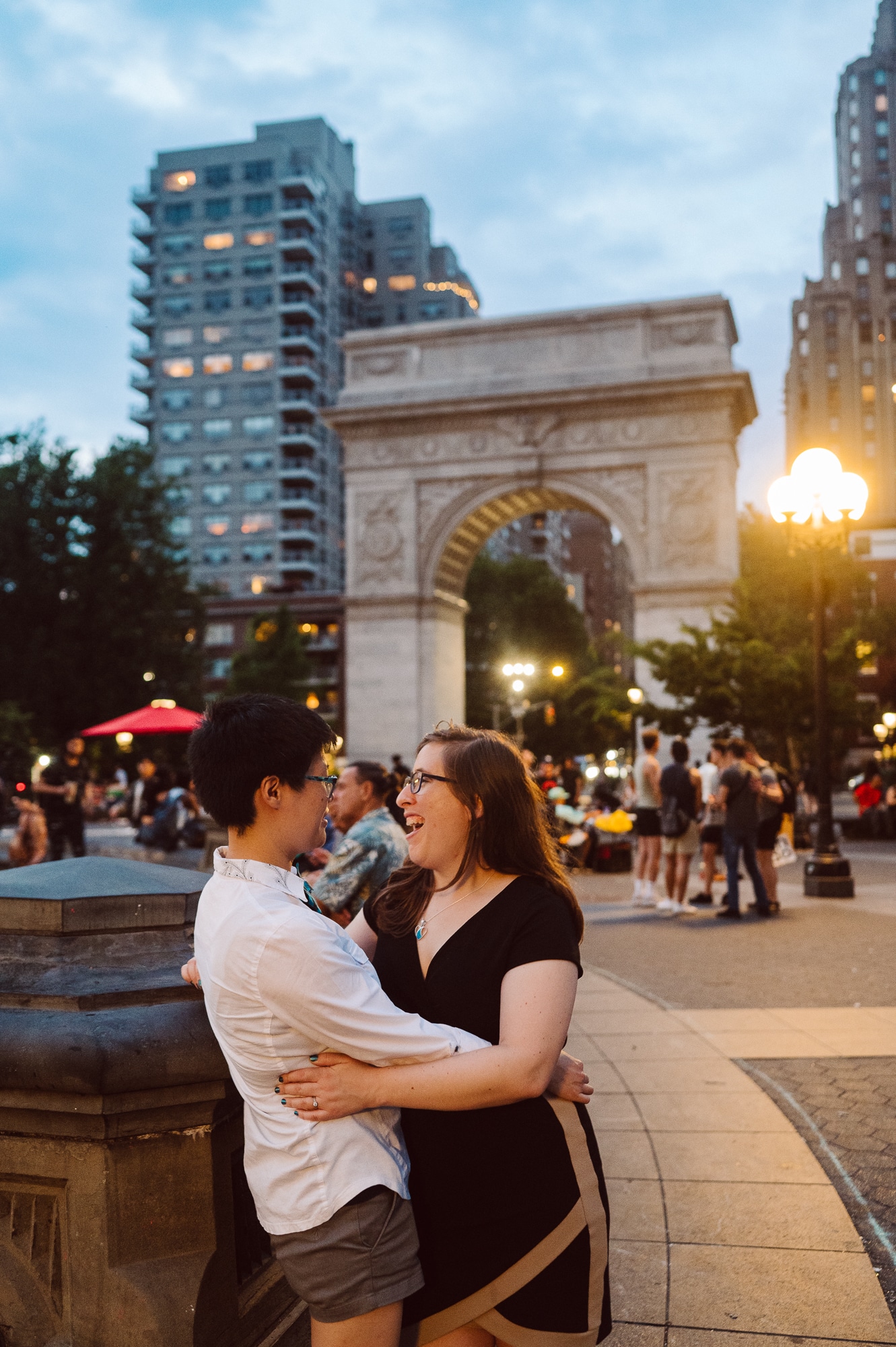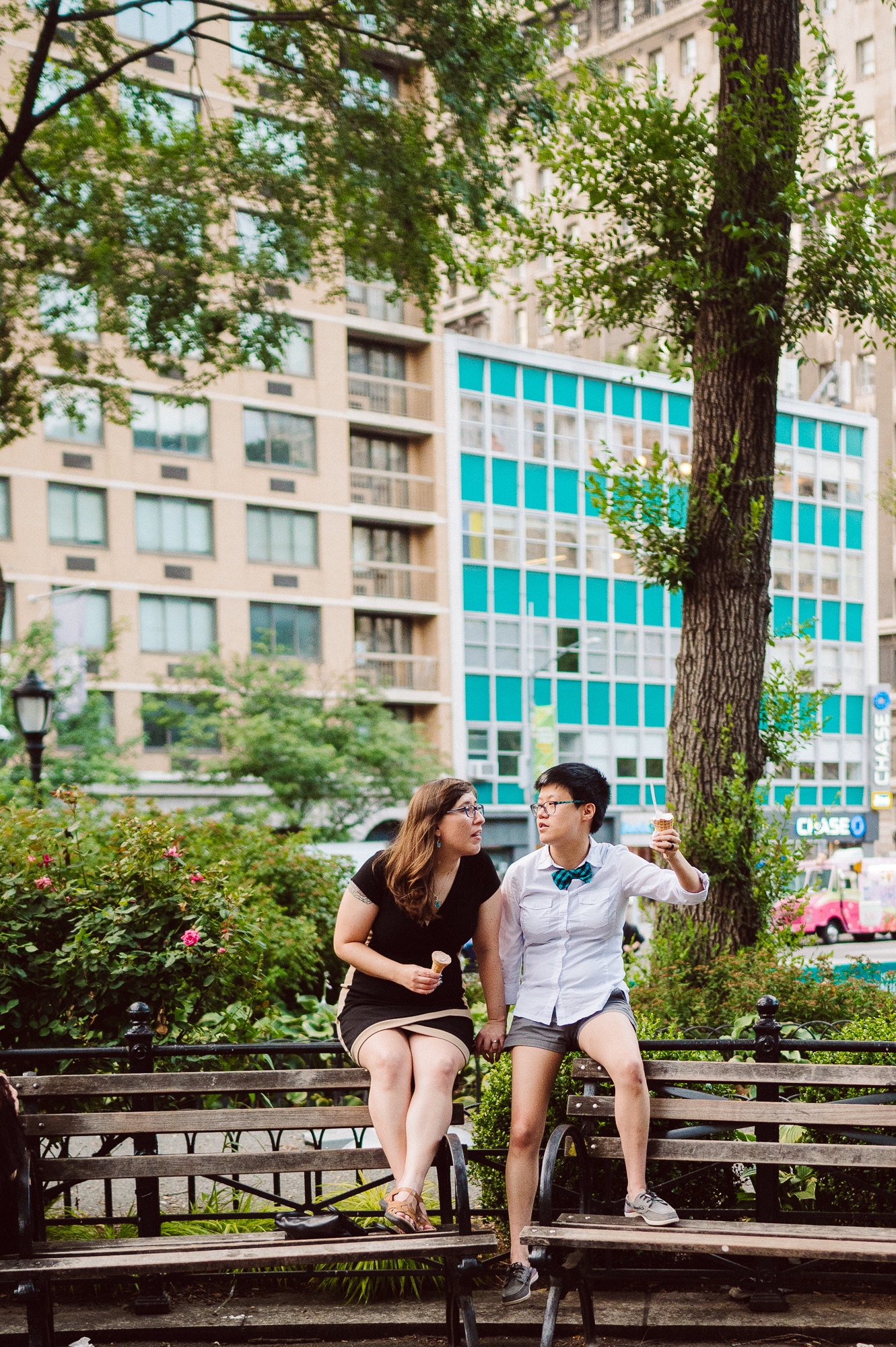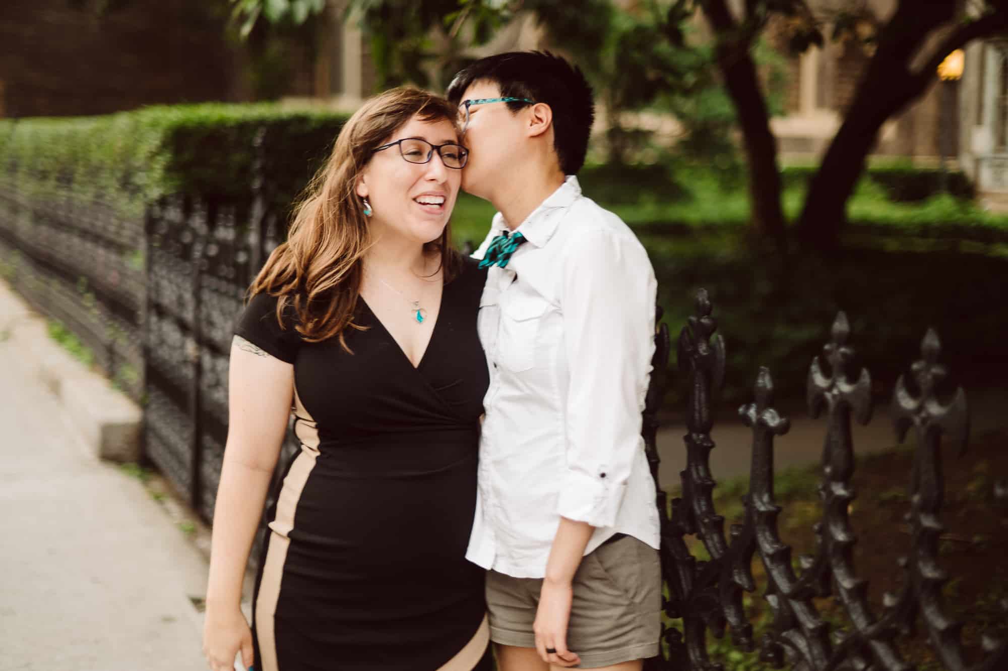 Leah and Helen, an absolutely delightful couple, discovered my work online, and it felt like destiny brought us together. From the very first moment we met, their genuine affection and undeniable chemistry were palpable, igniting my excitement to capture their unique love story through the lens of my camera. Throughout the session, their endearing moments were infused with contagious laughter and radiant smiles, effortlessly painting a picture of warmth and happiness. Our journey began at the picturesque Union Square Park, where we aimed to immortalize their deep connection against the backdrop of the bustling cityscape.
