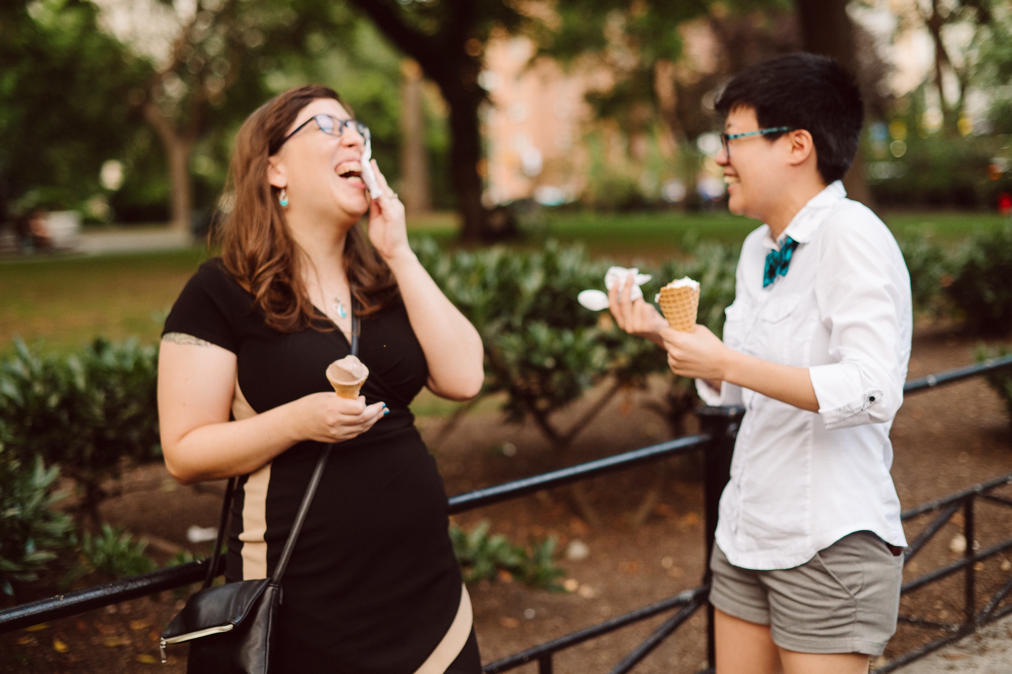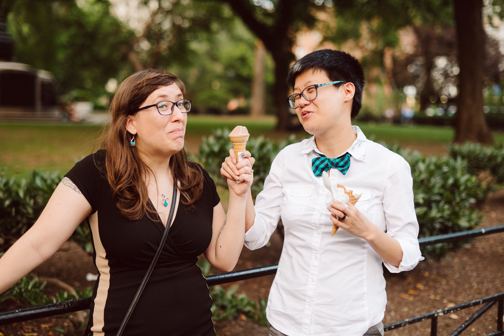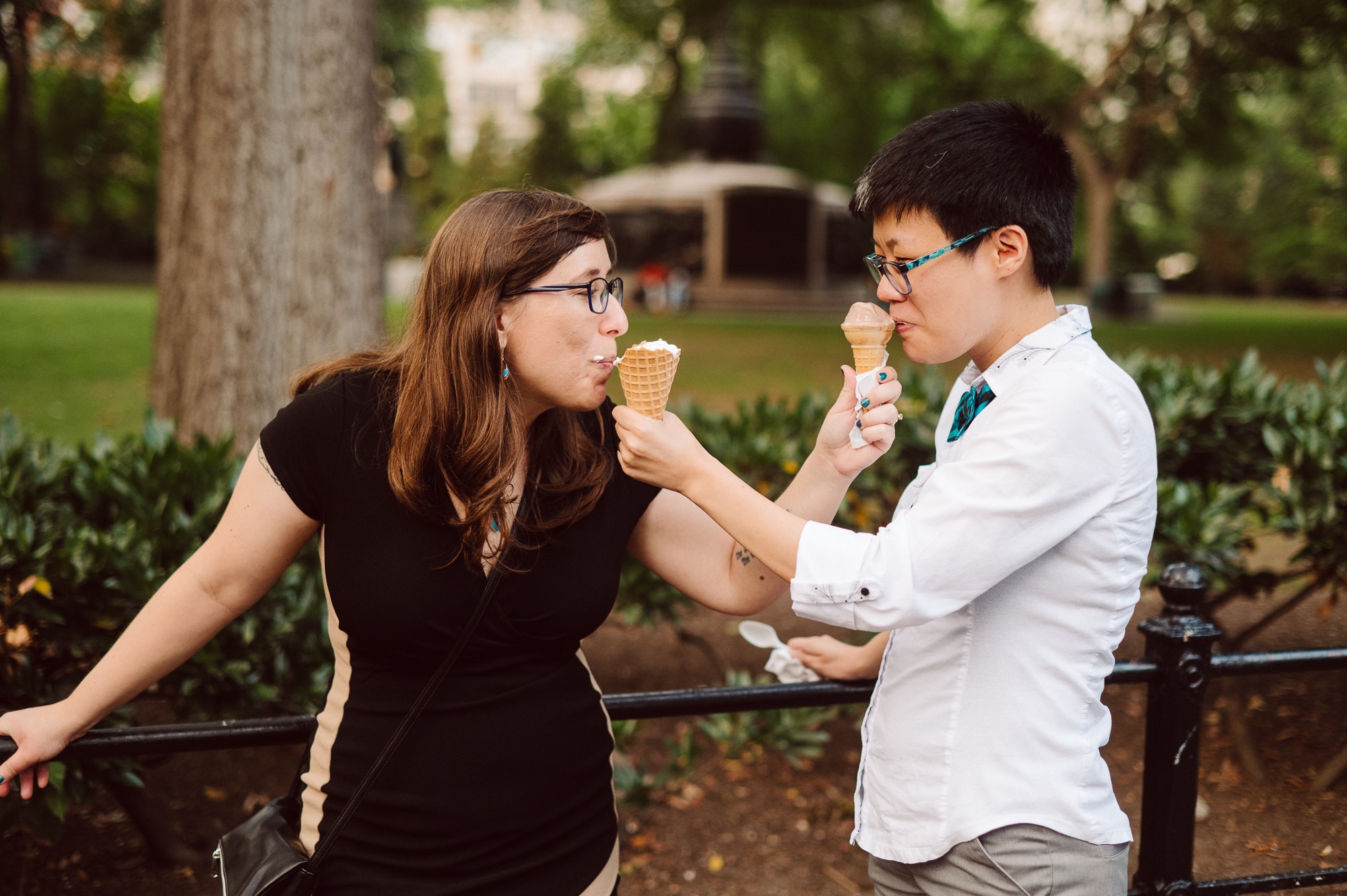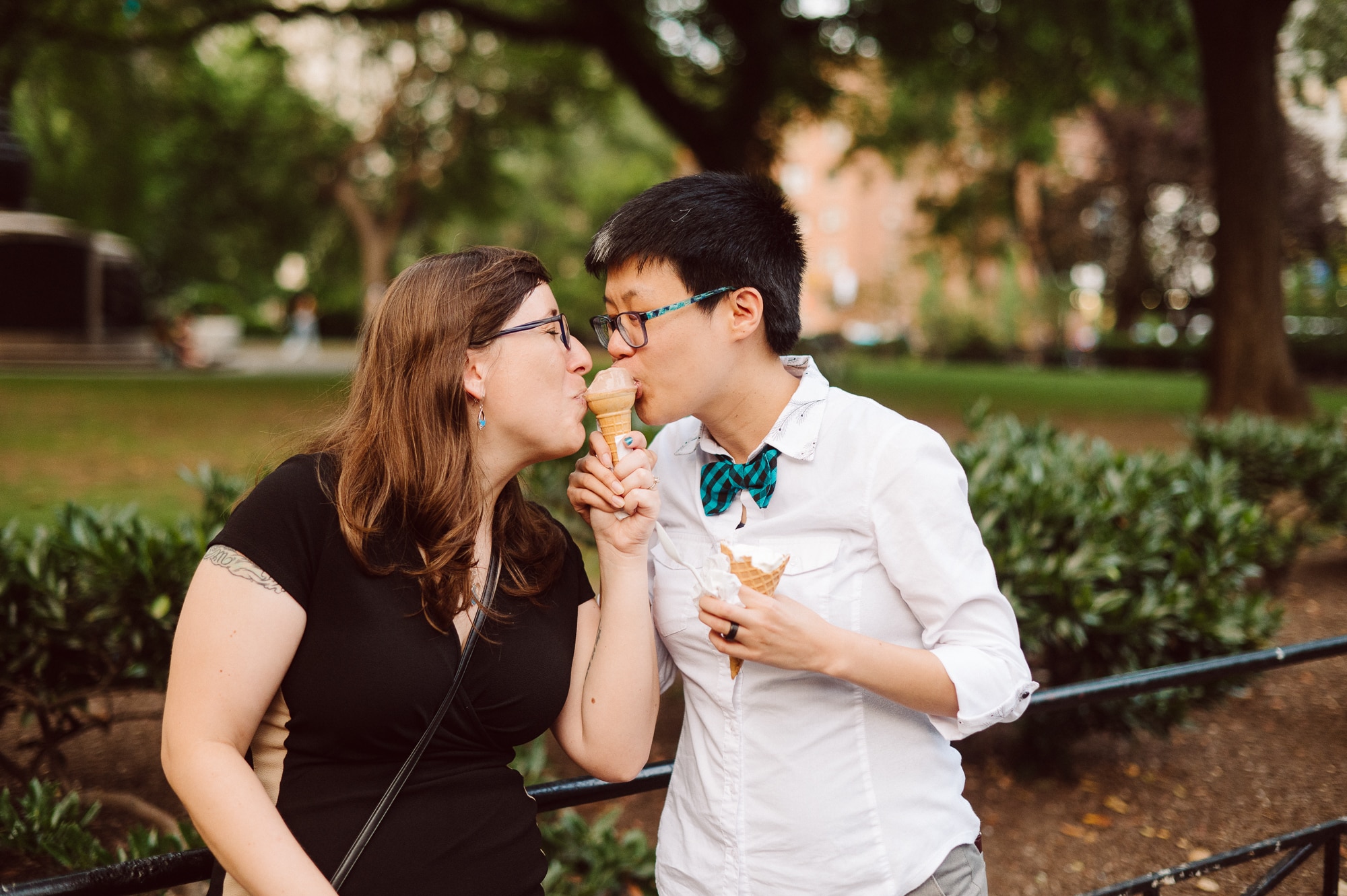 Leah and Helen, an absolutely delightful couple, discovered my work online, and it felt like destiny brought us together. From the very first moment we met, their genuine affection and undeniable chemistry were palpable, igniting my excitement to capture their unique love story through the lens of my camera. Throughout the session, their endearing moments were infused with contagious laughter and radiant smiles, effortlessly painting a picture of warmth and happiness. Our journey began at the picturesque Union Square Park, where we aimed to immortalize their deep connection against the backdrop of the bustling cityscape.