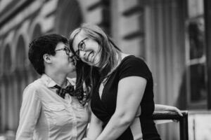 As we brought the session to a poignant close, we found ourselves at the iconic Stonewall Inn, an emblematic site that witnessed the birth of the gay rights movement in 1969. This historic location served as a powerful backdrop, symbolizing the essence of Leah and Helen’s unforgettable evening in New York City. Against this backdrop of courage and progress, their love story resonated with depth and significance, producing images that embody the spirit of love, acceptance, and the ongoing fight for equality.